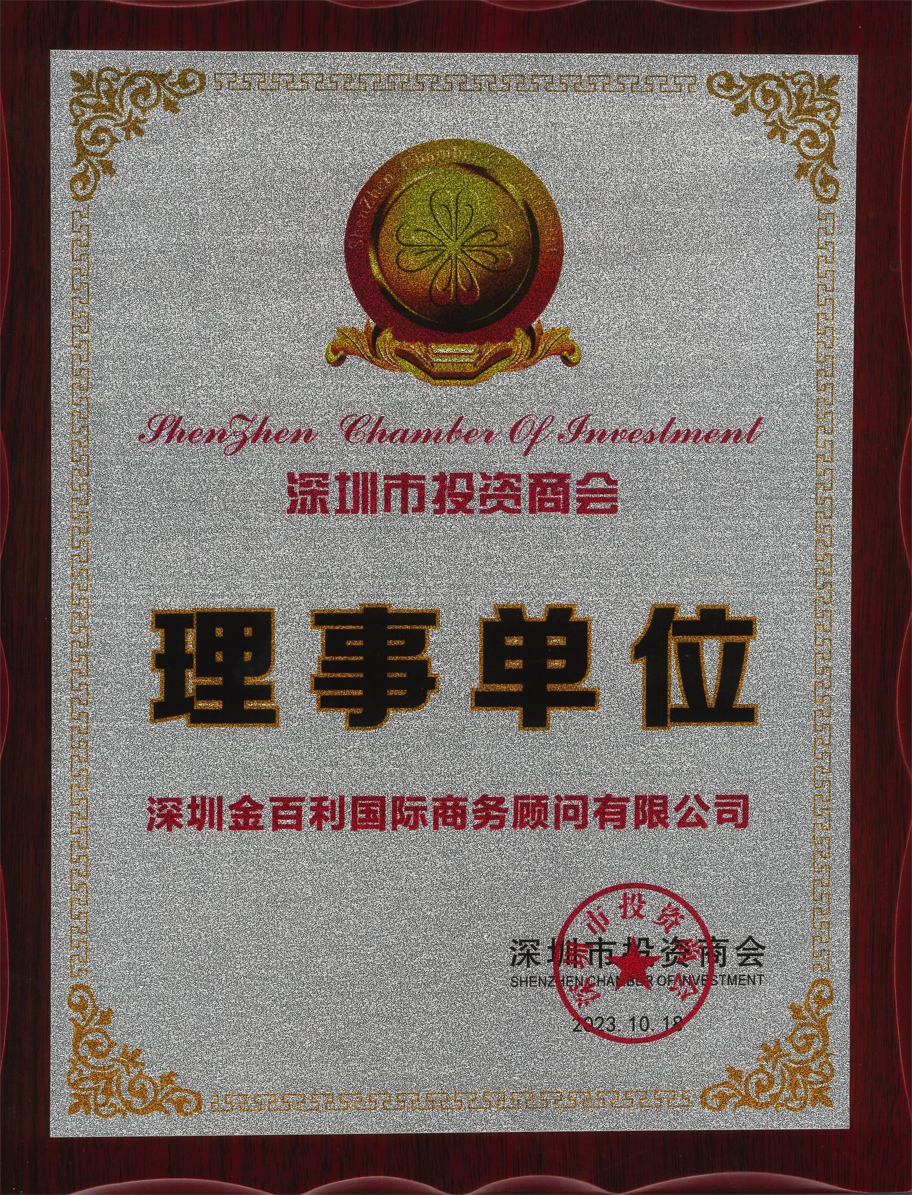 熱烈慶祝深圳金百利國際商務(wù)顧問有限公司獲得深圳市投資商會理事單位證書,深圳市投資商會的理事單位是由深圳市的投資機(jī)構(gòu)、企業(yè)和相關(guān)行業(yè)的代表組成的組織。深圳金百利國際商務(wù)顧問有限公司成立于2010年,在國家“一帶一路”政策的驅(qū)動下,公司迅速發(fā)展,至今14年來,深圳金百利國際商務(wù)顧問有限公司歷經(jīng)坎坷,以深圳總部為中心,在全球各地設(shè)有分公司,具有代表性的北京、上海、廣州、香港、倫敦等地區(qū)。